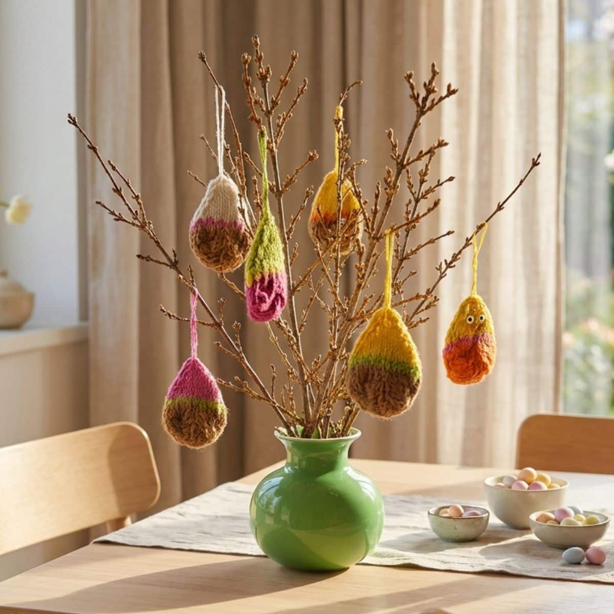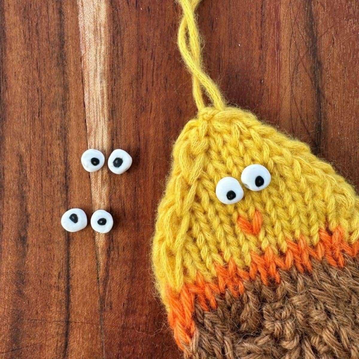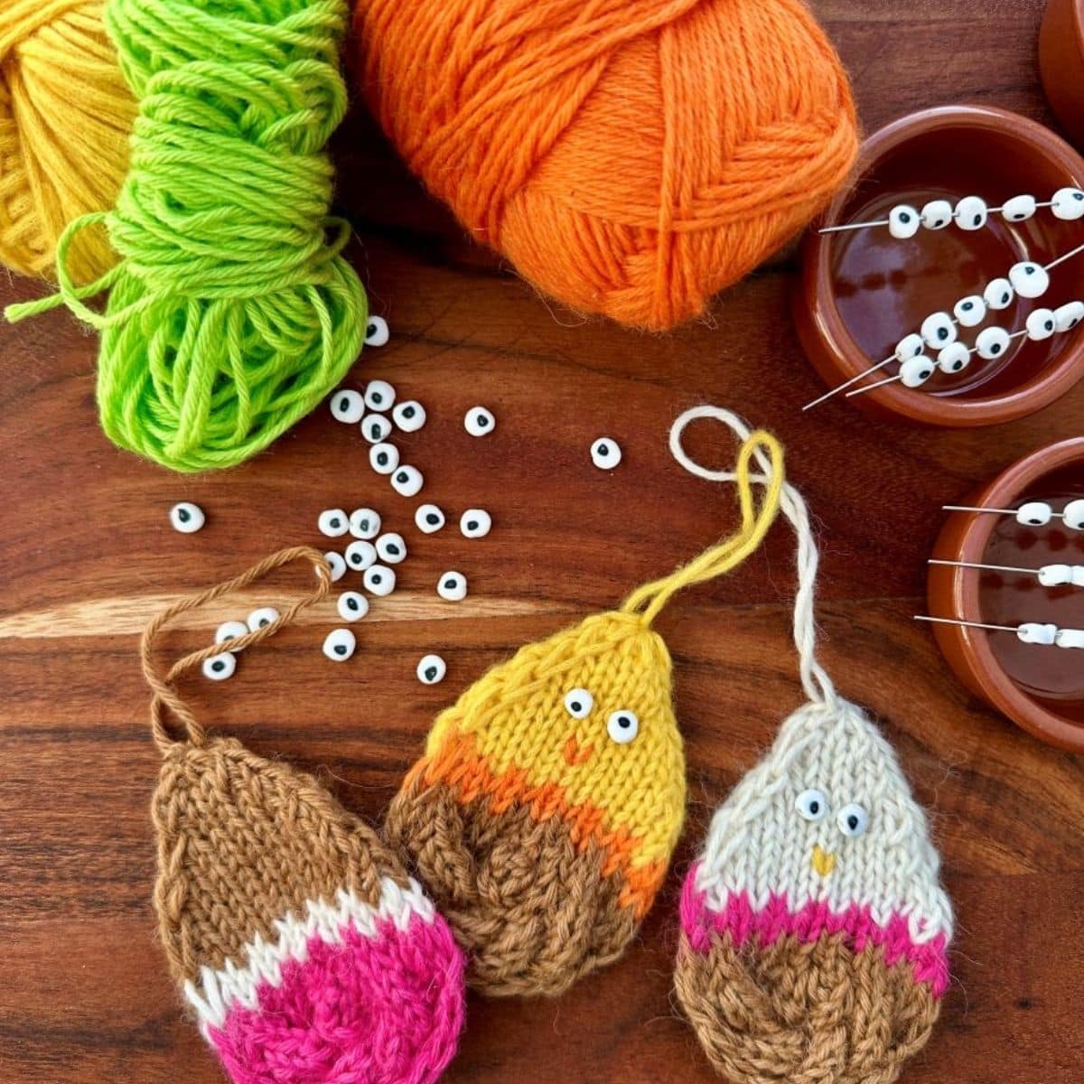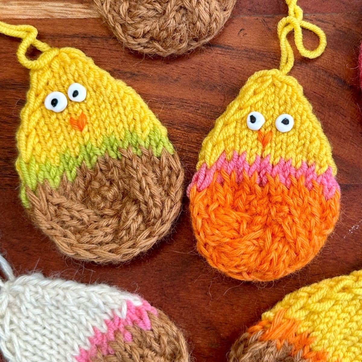 Garnmængde: 7-8 g i alt pr. æg. Farve A (reden) : 4 g , Farve B (striben) : 1 g , Farve C (ægget/kyllingen): 3 g