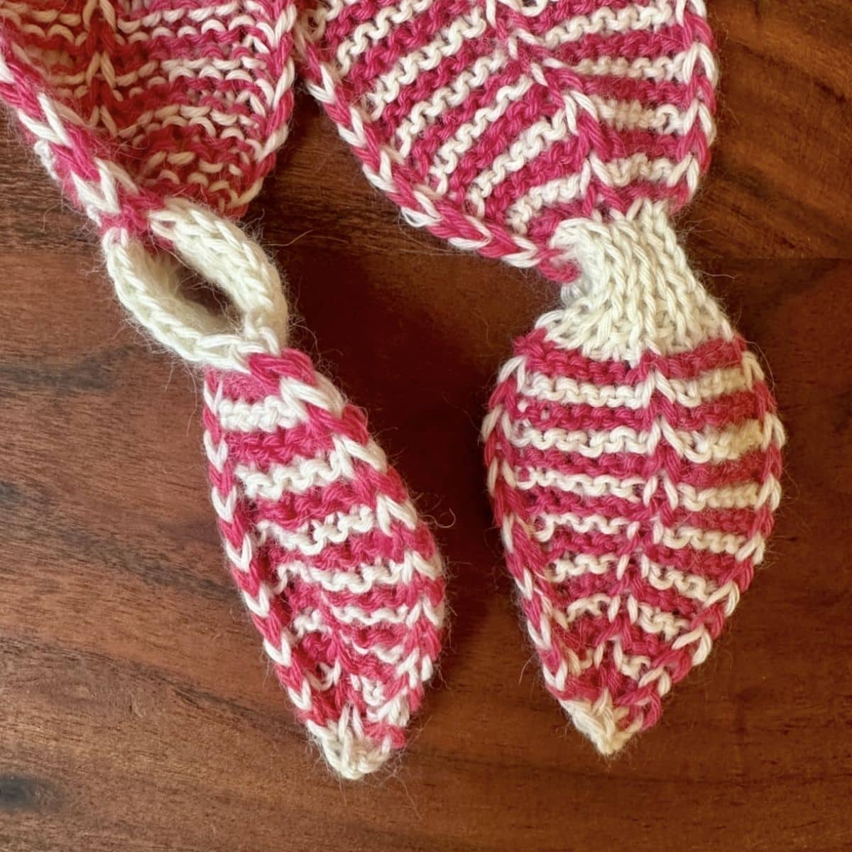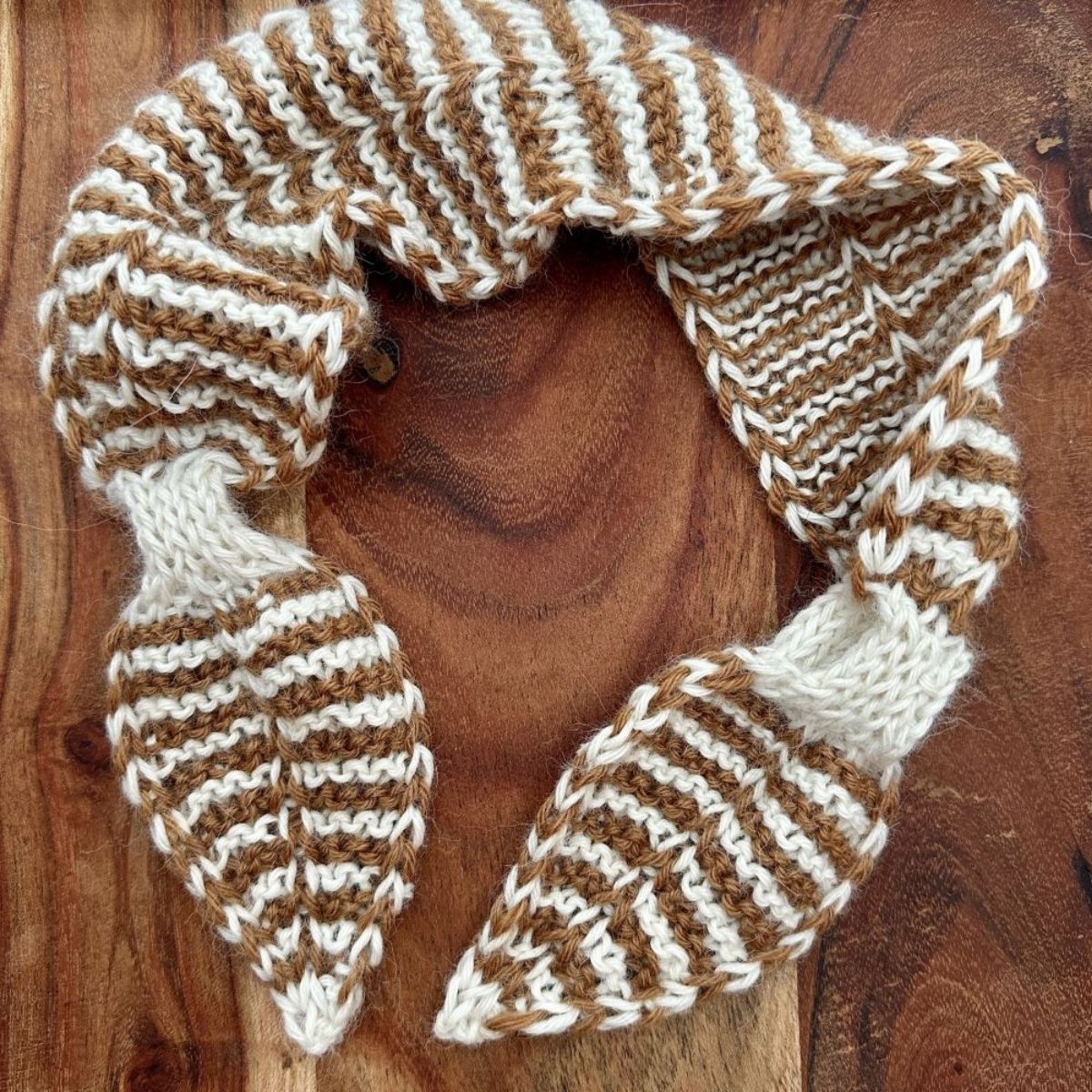Proces: Der slås op med midlertidigt opslag og halsfisken strikkes fra midten af nakken og ud mod først den ene spids og dernæst den anden spids. Dermed bliver spidserne helt ens.