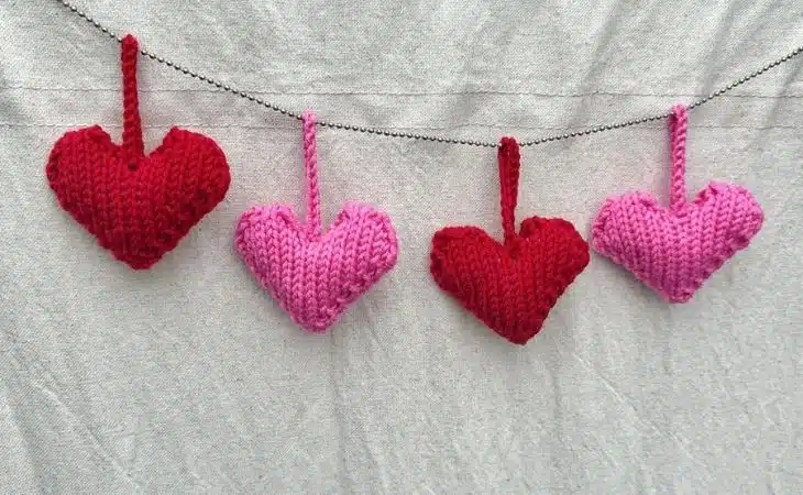 Her finder du strikkede hjerter og andet sødt og kærlighedspræget strikket pynt.